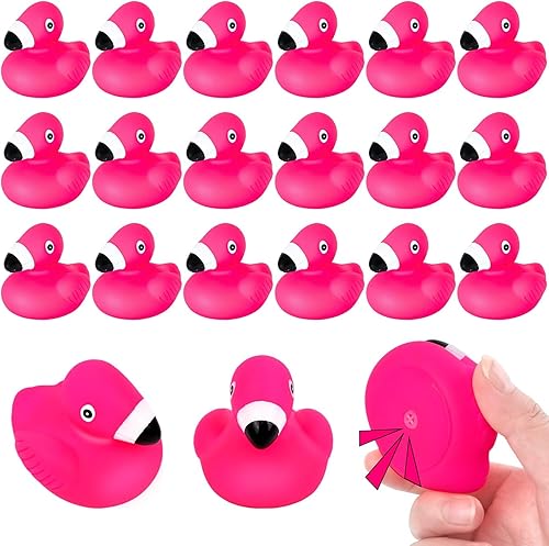 20PCS Adorable Flamingo Rubber Ducks Bulk Pink Floating Squeaky Bath Toys Perfect for Baby Showers, Birthday Parties, Cake Toppers, Pool Party Favors and Classroom Prizes (20)