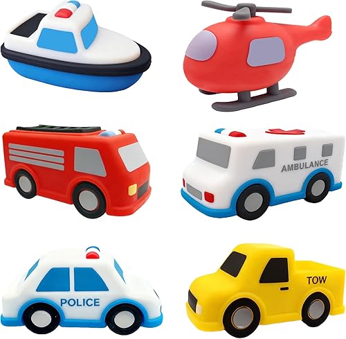 Silicone Bath Toys with No Holes |6pcs Mold Free Baby Bath Toys for Kids1-3 |Baby Bath Cars Set |Sealed Design Prevents Water Trapping |Soft, Squeezable & Floating Bathtub Toys For 2-4 Toddlers (cars)