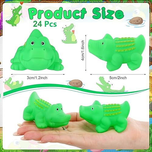 Sotiff 24 Sets Plastic Alligator Rubber Crocodile Float Squeak Small Bath Alligators for Baby Shower Halloween School Classroom Christmas Summer Supplies Party Favors