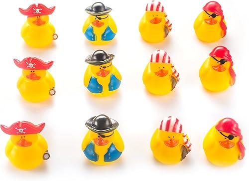 Fun Central 12 Pieces - Mini Pirate Rubber Duckies Bath Toys for Bath Time and Ducking - Party Supplies - Assorted Design