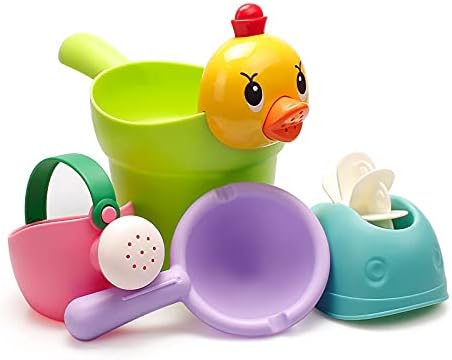 Kids Bath Toys Set, 4-Piece Duck Design Water Play Set with Watering Can, Scoop, and Whale Spout, Multi-Color