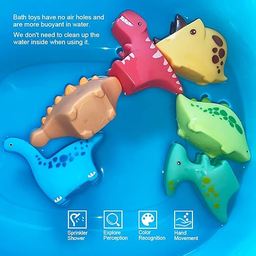 Floating Dinosaur Bath Toys Without Holes(6PCS),Baby No Hole Soft Bathtub Dinosaur Bath Toys and Bathroom Toys for Toddlers