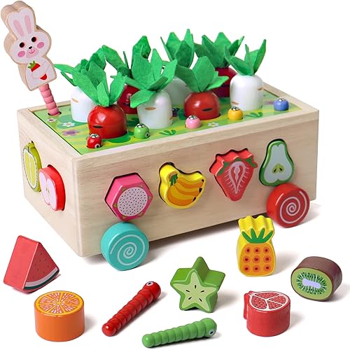 SHIERDU Montessori Toys for 1 and 2 Year Old, Multifunctional Orchard Toy Car, Size Sorting and Counting Puzzle Game, Carrots Harvest Developmental Gifts for Boys and Girls