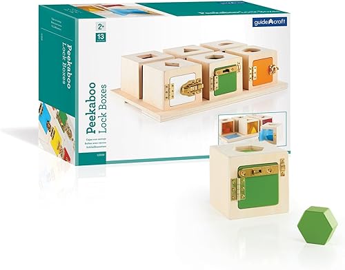 Guidecraft Peekaboo Lock Boxes with Storage Tray: Sorting & Stacking Toy for Children - Kids Early Learning , Multi-colored Wooden Educational Toddler Toy