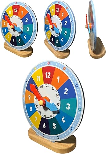 Teaching Clock, 3 Layers Interesting Educational Composite Wood 15x15cm Cute Kid Teaching Clock for School Classrooms Homes
