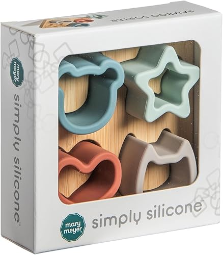 Mary Meyer Baby and Toddler Toys Simply Silicone Sorting Puzzle with Bamboo Base for 12+ Months Old Preschool Gifts, 4 x 4-Inches, Animal, Star, Heart Shapes