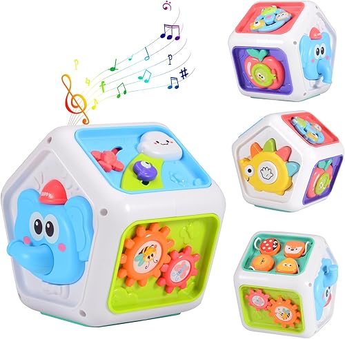 Montessori Baby Activity Cube, Toddler Travel Toys Car Activities for 1+ Year Old, Sensory Toys Busy Cube, Learning Fine Motor Skills for Birthday Gifts for 6 9 12 18 Month 1 2 Year Old