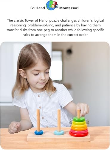 Practical Life/Sensorial/Math Wooden Building Towers of Hanoi (10 Rings) Rainbow Stacking Tower Blocks STEM Logical Game Travel Toy Family Game Column Blocks Kids 3+ Years Gift
