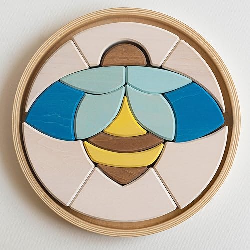 Wooden Puzzles for Toddlers,The Bee Puzzle Block Set with Storage Tray, Wooden Stacking Building Block for Kids Ages 3-5