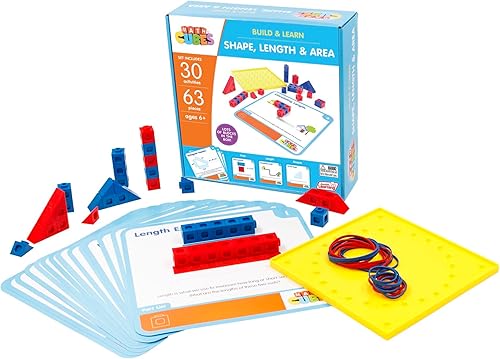 Junior Learning: Mathcubes - Shape, Length & Area - 30 Activity Set, Build & Learn, Blocks & Boards Hands On Math, Educational Set, Kids Ages 4+