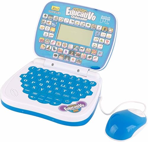 Bnineteenteam Kids Bilingual Learning Laptop, English Spanish Music Rereading Keyboard, ABS Material, for Children (Rose