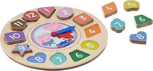 Peppa Pig Clock Puzzle Shape Sorting Game for Toddlers, Kids ~ 5 Pc Learning Toy Bundle with Peppa Wooden Clock, 3 Flash Card Packs, and More (Peppa Pig Wooden Toys)