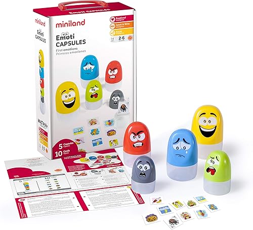 Miniland Emoticapsules. Multicolor and Funny Toy which Represent The Basic Emotions and Invite Children from 2 to 6 Years to Recognize Daily Feelings. SEL Learning