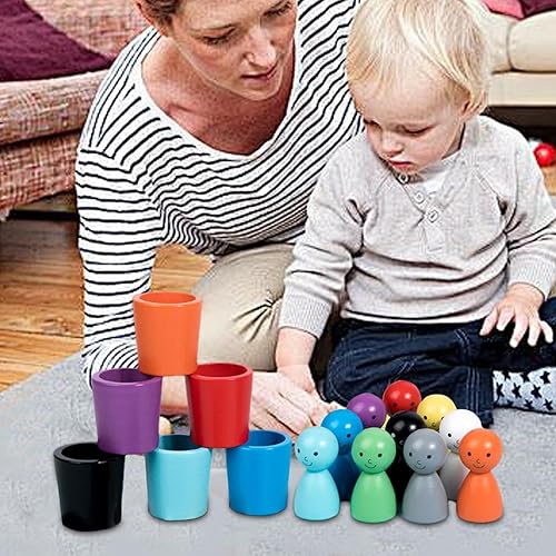 Color Sorting Cups Peg Dolls in Cups Emotions Peg Dolls Color Matching Cups Game Baby Montessoris Wood Toy Rainbow Ball and Cups Color Sorting Games