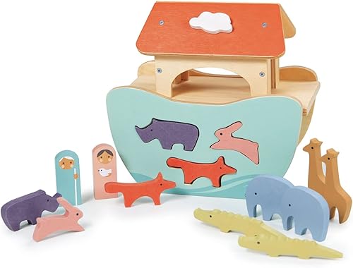Tender Leaf Toys - Little Noah’s Ark - Wooden Animal Shape Sorting Toy - Compact and Made for Little Hands, Improve Hand-Eye Coordination and Concentration for Boys and Girls - Age 2+