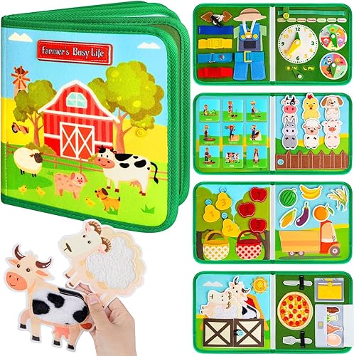 Quanquer Busy Book for Toddlers 1-3, Farm Busy Board Montessori Toy for 1 2 3 4 Years Kids Boy Girl, Preschool Learning Activities Developing Sensory Board, Car Rides Airplane Toddler Travel Toys