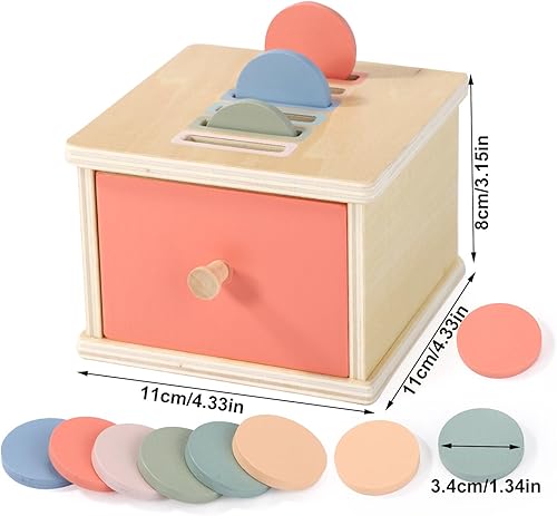 Color Sorting Drawer Box, Wooden Premium Toddlers Color Sorting Coin Box with Drawer Infant Developmental Coin Drop Toy for Baby Boys and Girls
