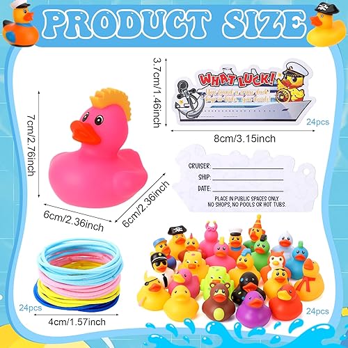 72 Pcs Cruise Rubber Ducks Kits Includes 24 Pcs Rubber Ducks 24 Pcs Cruising Duck Tags and 24 Pcs Bands for Shower Birthday Gifts Party Favors