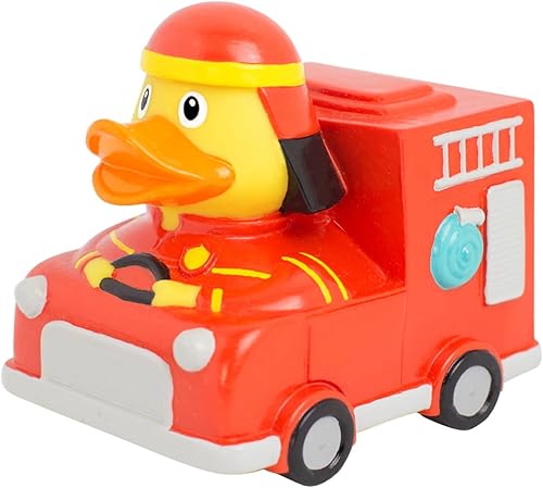 3 Inch Fire Truck Rubber Duck Bath Toy, Collectable, Fun for All Ages, Auto Dash Decoration, Crusing Vacation Gift, Party Favors, Office, School, Home