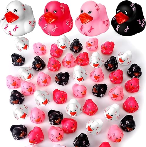 Pink Ribbon Rubber Ducks Bathing Toy Breast Cancer Bulk Squeaky Rubber Ducks Float Bathtub Ducks Decoration Favors Multicolor Gift for Baby Shower Birthday Summer Pool Activity (12 Pcs)