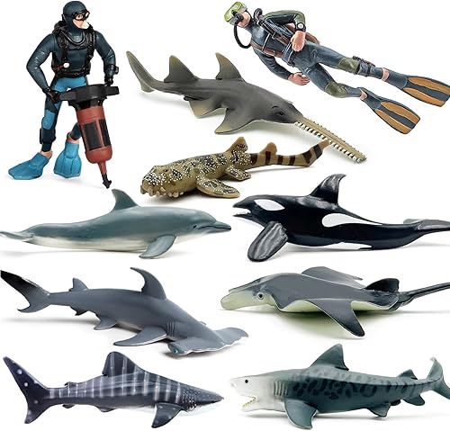 Gemini&Genius 10Pcs Realistic Shark Toys- 5-6" Ocean Sea Animals Pool Bath Tub Toys, Shark Figurines Set for Kids, Cake Toppers, Party Favor Gifts for Kids & Toddlers