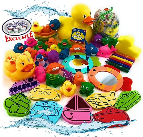Mɑtty's Toy Stop 119pcs Ultimate Bath Toys Set Featuring Giant Rubber Duck, Bath Stickers, Mirrors, Crayons, Sponge, Mini Animals, Medium Animals, Stacking Boats, Foam Letters, Numbers & Storage Bag