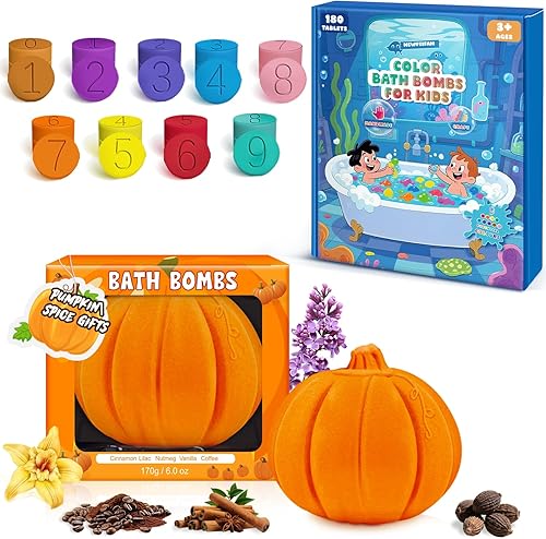 Bath Bombs for Kids+Pumpkin Spice Bath Bombs Gifts for Women&Men-Halloween Boo Spooky Basket Stuffers Giftable Packaging,