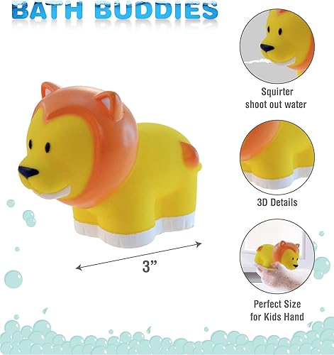 DolliBu Lion Bath Buddy Squirter - Floating Yellow Lion Rubber Bath Toy, Fun Water Squirting Bathtime Play for Toddlers, Cute Wild Life Zoo Animal Toy for The Bathtub, Beach, & Pool for Girls & Boys