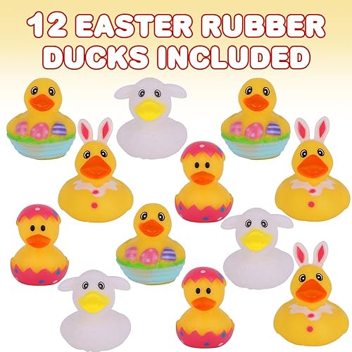 ArtCreativity 2.5 Inch Easter Rubber Ducks for Kids – Pack of 12 Assorted Styles Mini Easter Ducks, Fun Egg Hunt Surprise Toys, Easter Party Favors, Jeep Ducks, and Easter-Themed Bath Toys for Kids