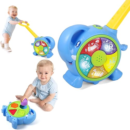 Baby Push Walker with Music Sound Light, Infant Age 12 Months Learning to Walk, 2 in 1 Early Learning Push Toys for Boys Girls, Christmas 1st Birthday Gifts for Toddler Age 1 2 3, Musical Walking Toys