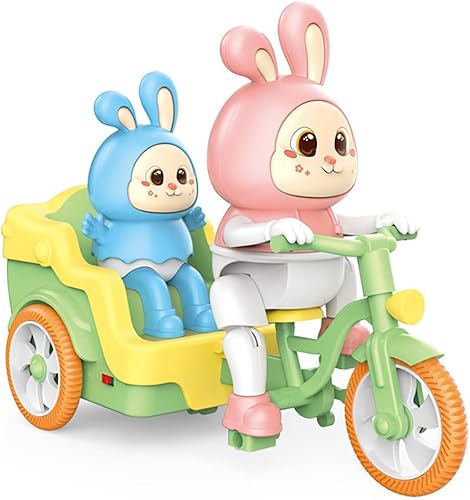 Miracland Tricycle-Riding Rabbit Musical Toy, Adorable Baby and Mom Rabbit Toy, Electric Tricycle Toy with Simulated Cycling Movement, Cool Lights and Joyful Music (Pink)