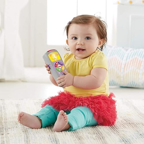 Fisher-Price Pretend TV Remote Baby Toy with Lights Music and Learning Songs, Fine Motor Toy, Toddler Pretend Play, Laugh & Learn Sis