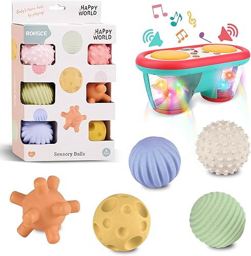Baby Drum & Sensory Balls Set, Baby Toys for 6-12 Months
