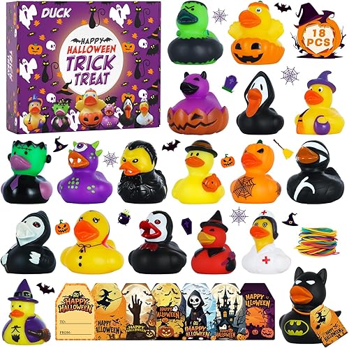 18 Pcs Halloween Rubber Ducks,Halloween Ducks for Halloween Goodie Bag Fillers,Mini Duckies Baby Bath Toys for Halloween Party Favors Decorations Classroom Game Prizes