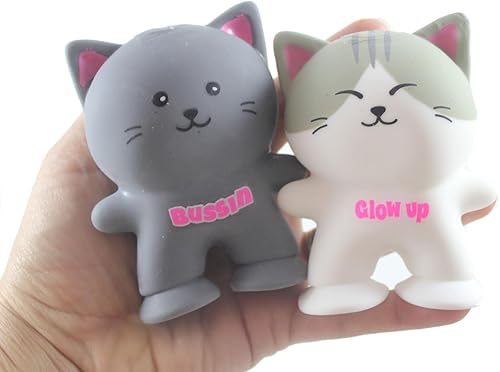 Set of 2 Random Stretchy Suction Foot Cat Sand Filled - Kitty Lover Sensory Fidget Toy Weighted Desk Pet Fun (2 Random Colors)