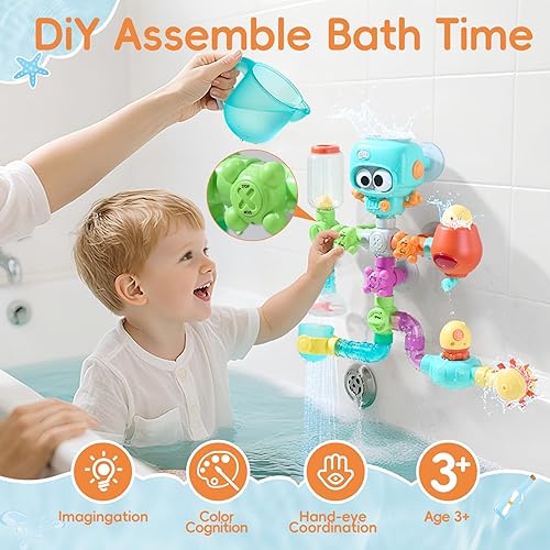 Bath Toys for Kids Ages 4-8, 27PCS Mold Free STEM Building Bath Toys for Toddlers 3-5, Interactive Bath Toy for Kids Ages 3-5, Bathtub Shower Toys and Storage Bag, Birthday Gift for Boys & Girls