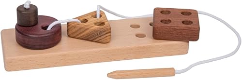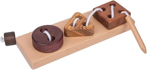Montessori Wooden Lacing Toys for Toddlers 2 3 4 Year with Base – 3 Shapes: Circle, Triangle, Square – Educational Threading Puzzle for Preschool Fine Motor Skills,Travel Activity Toy(3 Natural Woods)