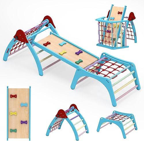 Pikler Triangle Set 7in1 Toddler Toy Indoor Foldable Wooden Montessori Climbing Set Jungle Gym for Kids Colored for Baby 1-6 Years