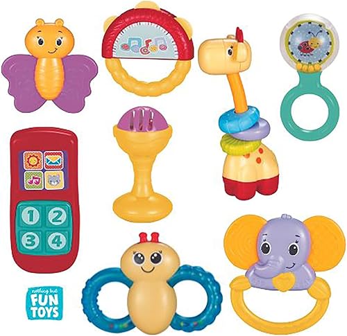 My First Teether & Rattles Set - 8pc Soothing & Chewing Textured Toys, Animal & Music Theme, BPA-Free, Baby & Toddlers 3 Mo+