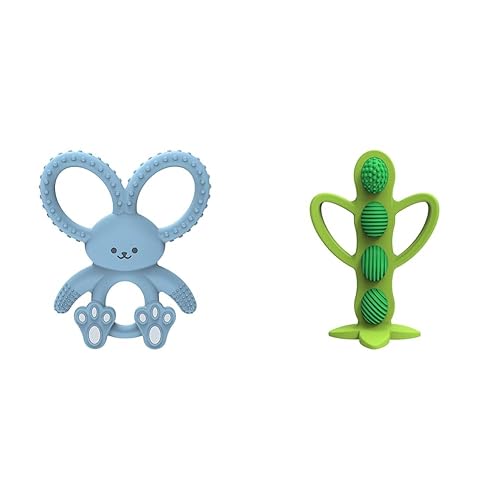 Dr. Brown's Flexees Blue Bunny Silicone Teether and Peapod Teether Toothbrush Bundle for Baby, 3m+, BPA Free