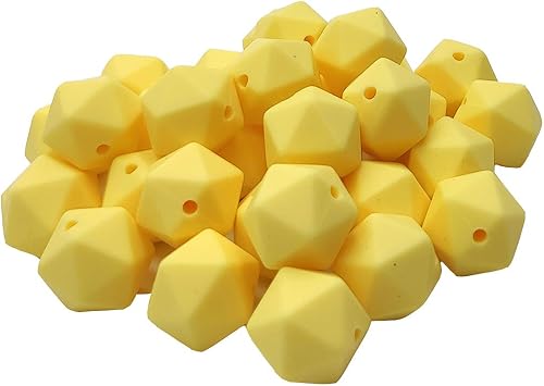 Custard Yellow Color Silicone Polyhedron Beads 14mm Silicone Geometry Icosahedron Beads for Mom Jewelry Necklace Making