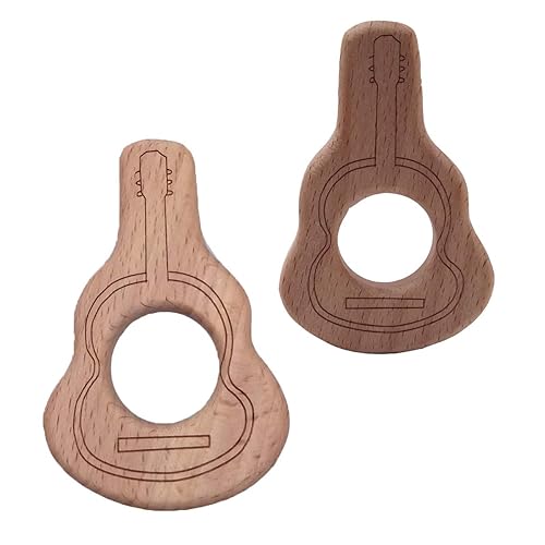 2pcs Lovely Cartoon Wood Guitar Pure Natural Animal Shape Beech Wooden Violin Handmade DIY Necklace Pendant (Guitar 2pcs)
