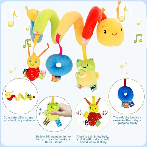 Civaner Newborn Car Seat Toys Stroller Toys for Baby 0-6 Months Infant Activity Spiral Plush Toys Hanging Car Seat Crib Toy for Boy Girls Spiral Hanging Plush Toy Baby Shower Thank You Gift(Delicate)
