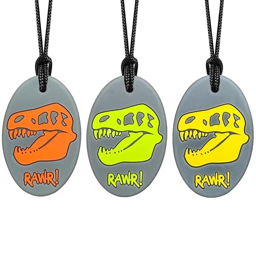 Xtra Tough (XT) Dino Sensory Chew Necklace for Kids, Boys or Girls - Chewing Necklace Teething Necklace Teether Necklace Chew Toys - Teething Toys Designed for Autism Aggressive Chewers