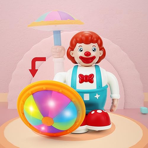 SUNGOOYUE Baby Clown Toy,with Light Music Rotating Umbrella Battery Powered Colorful Lights Lively Music for Kids Playtime Hand Eye Coordination