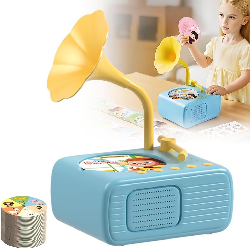 Keyrose Kids Phonograph with 99 Cards Treatregard, 2025 New Toddler Record Player, Early Education Phonograph Story Machine Blue