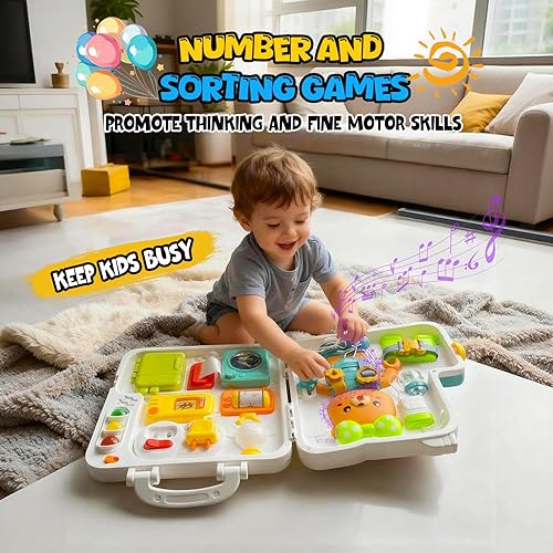 Montessori Busy Board Toys for 1 2 Year Old, Educational Montessori Baby Toys for 12-18 Months, Toddler 1-3 Musical Toys,Birthday Christmas Toys Gifts for 1 2 Year Old Boys Girls