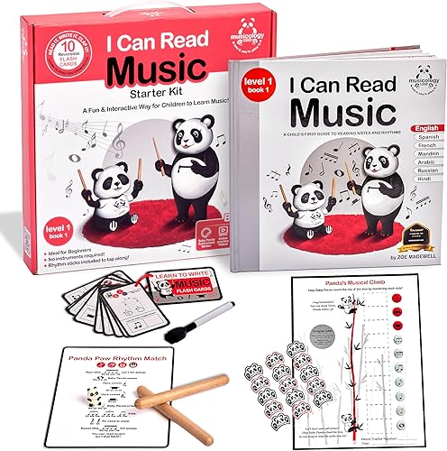 Montessori-Inspired Preschool Music Learning Kit | Teach Rhythm, Note Reading & Writing with Storybook, Flashcards, Rhythm Sticks & Games | Ages 3+