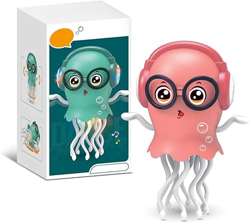Electric Crawling Octopus Tummy Time Toy Dancing Octopus Baby Toy Rechargeable Magic Dancing Music Squid for 3 4 5 6 Year Old Kids Boy Girl Birthday Gifts Pink
