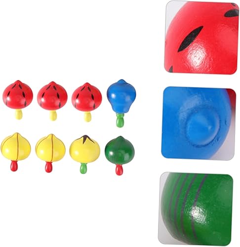 KICHOUSE 8pcs Wooden Fruit Tops Boys and Girls Gyro Toy Hand-Eye Coordination Vintage Style Random Style